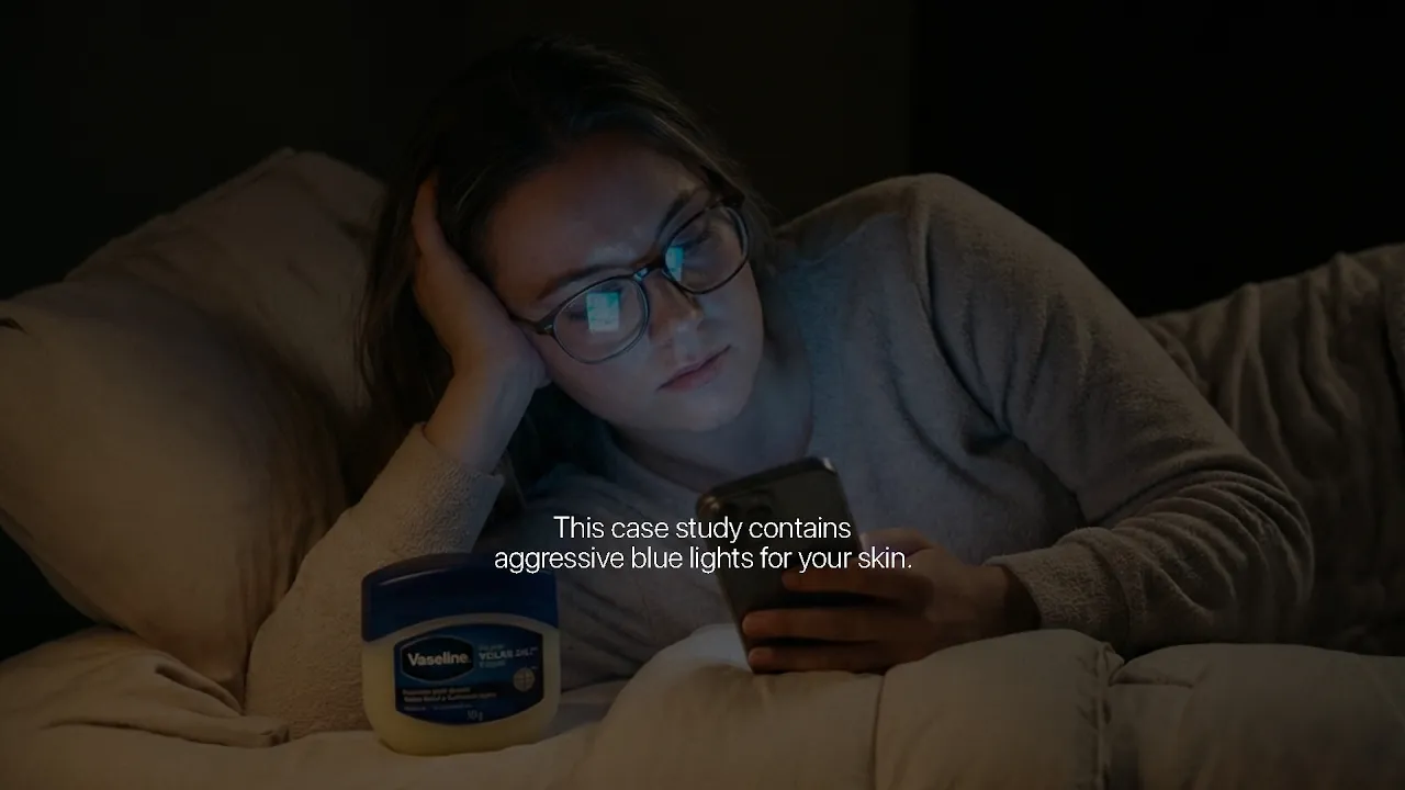 We all spend hours each day in front of screens, but few people realize that the blue light they emit can seriously damage our skin. That’s why we added a simple disclaimer, turning every digital content into a sensitive content for your skin. Because with Vaseline, we can protect our skin, even from our screens.